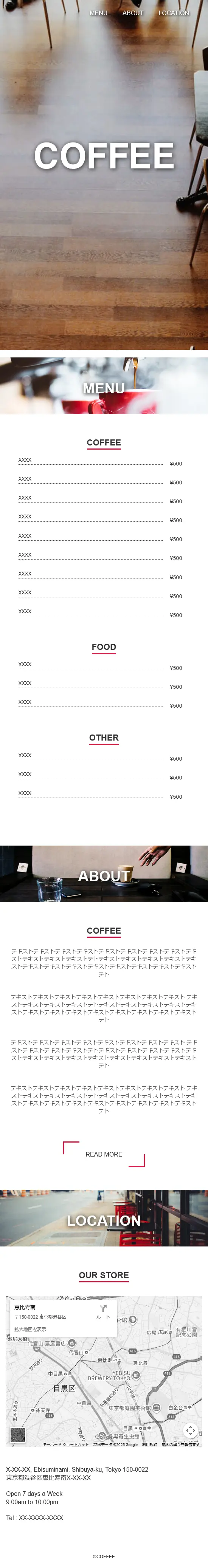 Cofe Shop Menu