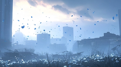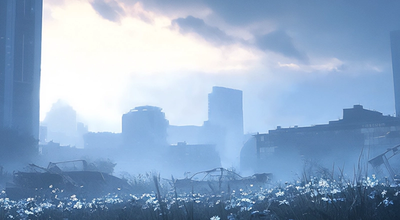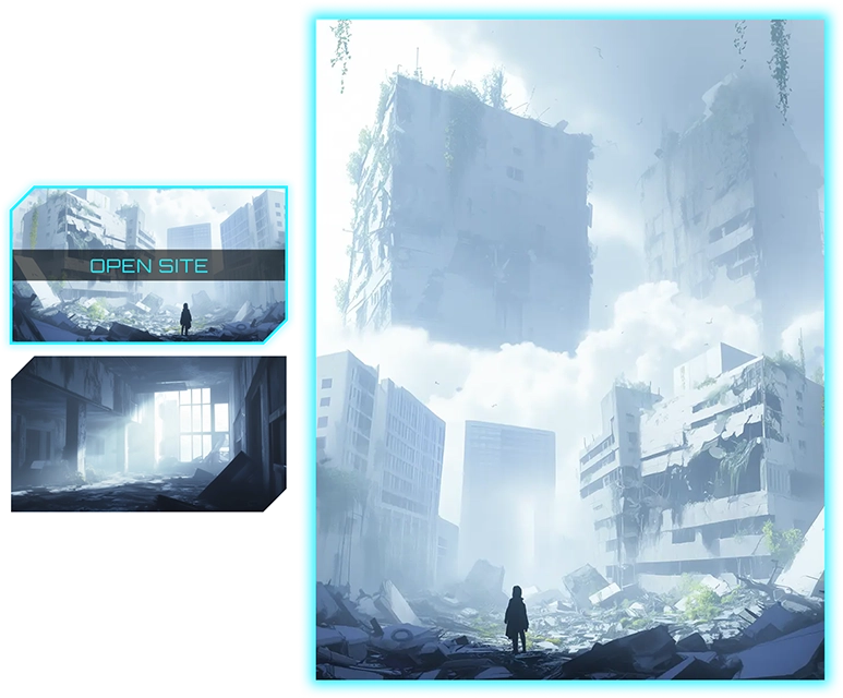 『荒廃×サイバー』をテーマに、生成AIで作成した背景を用い、